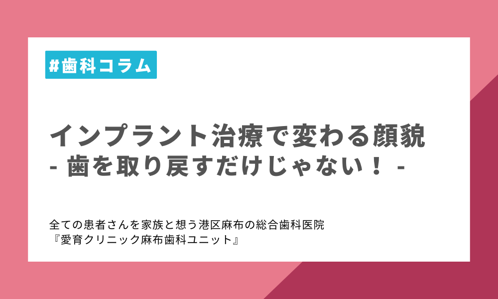 歯を失うと、食事や会話といった機能面だけでなく、見た目や顔の印象にも大きな影響を与えることがあります。特に口元や顎の形が変化すると、若々しさや自然な表情が失われ、自信をなくしてしまう方も少なくありません。そこで注目されるのがインプラント治療。今回は、インプラント治療が顔貌にもたらすポジティブな変化について詳しく解説します。